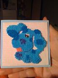 A punchneedle Blue! On a foam-like background, and with a magnet attached. Because I'm pretty proud of my first freestyle punchneedle, h...